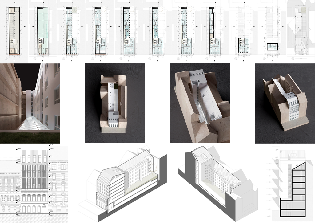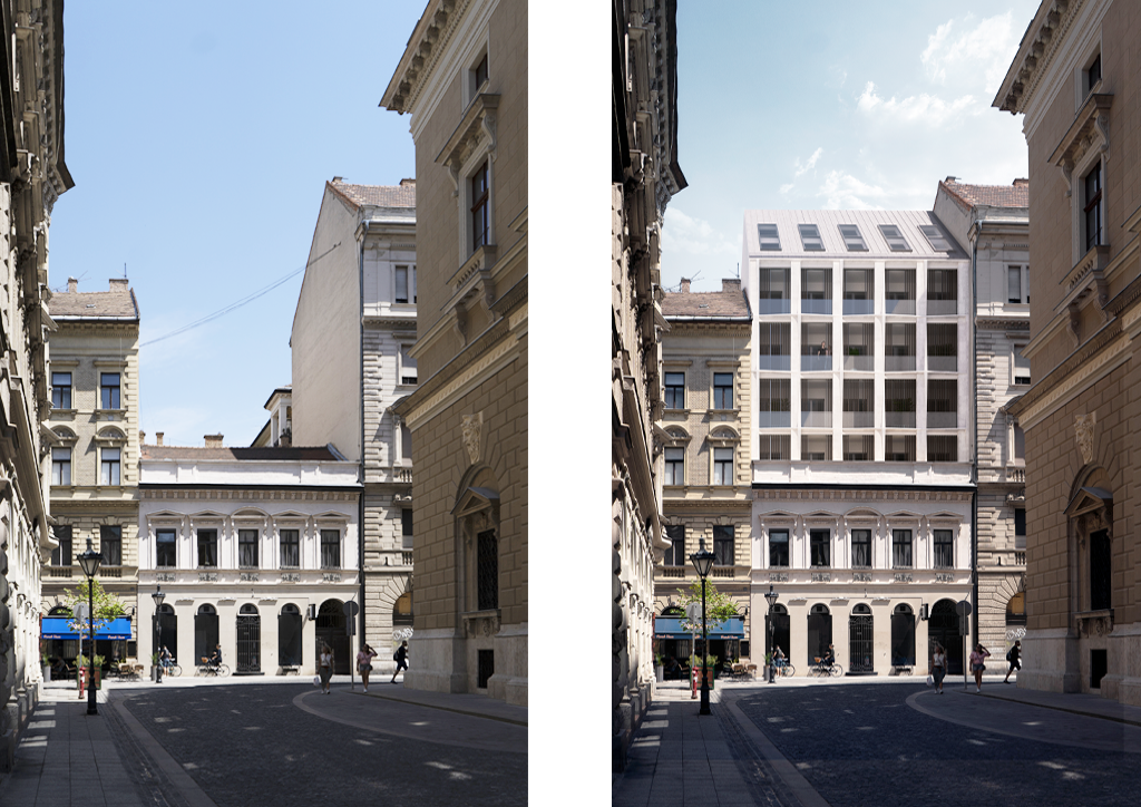 Hajós Street 17 was designed as a new 20-unit high-end residential building behind a protected and retained heritage façade, merging contemporary design with the existing historic urban fabric.